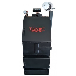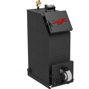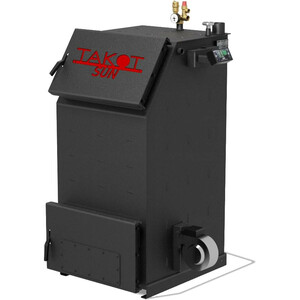 БрендTakot Мощность30 кВт КПД85 % Материалсталь Объем топки250 л Топливоуголь, дрова Опциитурбо-автоматика, верхнее горение Диаметр дымохода150 мм